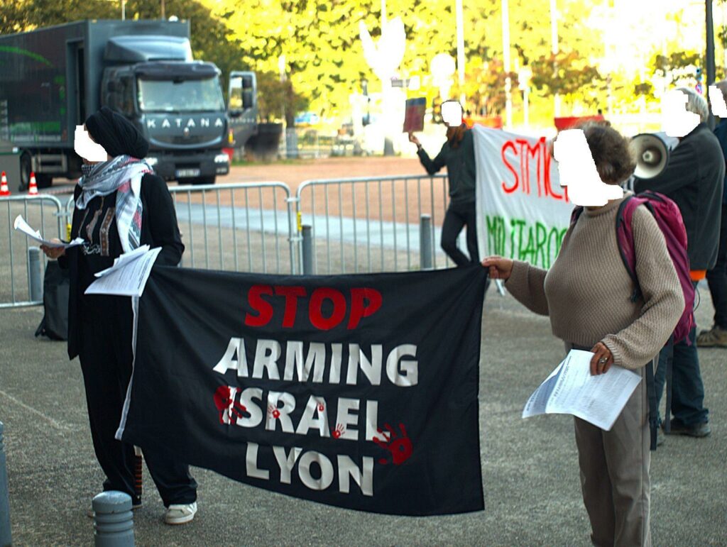 Un rassemblement a été organisé mercredi 17 septembre, lors à l'ouverture du salon, à l'appel des groupes Écran Total Lyon, Stop 5G Lyon, Groupe Grothendieck, Coordination Régionale Anti Armements et Militarisme, Fédération Anarchiste Lyon, Stop Micro (Grenoble), Technopolice Lyon, Stop Arming Israël Lyon, que nous avons relayé.