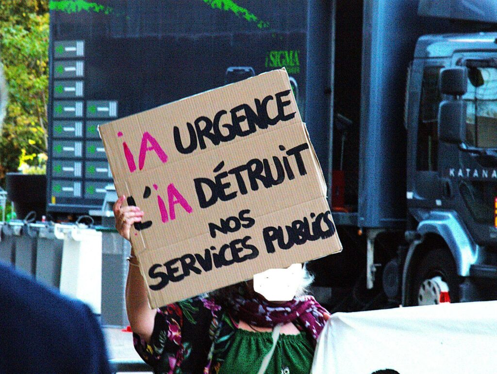 Les conséquences sont multiples et désastreuses : déshumanisation avec le déploiement de ChatGPT pour réaliser des gains de productivité et supprimer des postes, intensification du travail et perte d’autonomie totale, hausse du non recours aux droits et de la précarité, contrôle et flicage social décuplés par l’IA, suppression/réduction des droits à tout va à la Sécu, la CAF et France Travail.
