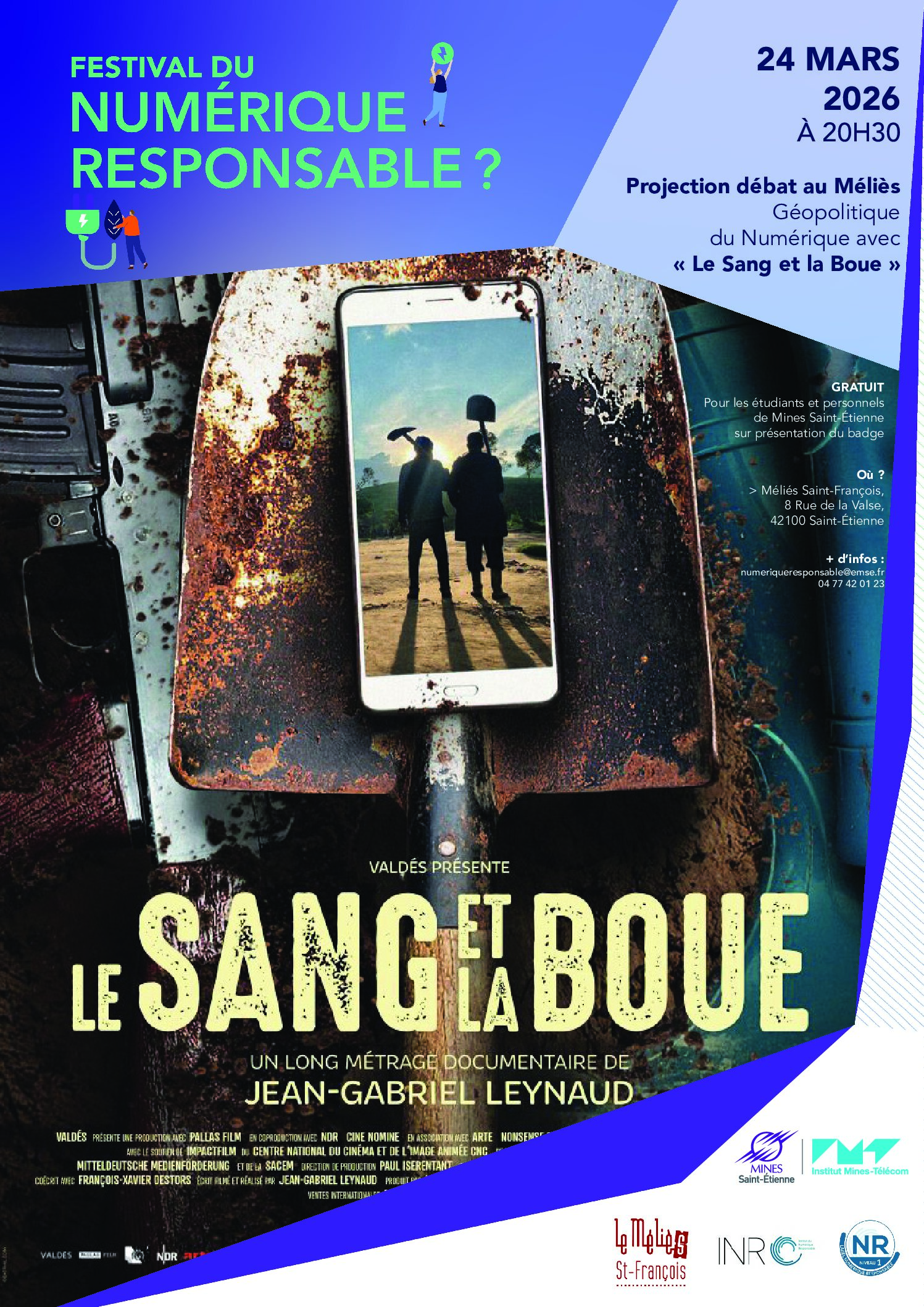 Ciné-débat "Géopolitique du numérique", le 24 mars à 20h30 au Méliès Saint-François, 8 rue de la Valse à Saint-Étienne, en partenariat avec la 3ème édition du "Festival du Numérique Responsable ?", organisé par l'Ecole des Mines de Saint-Étienne :