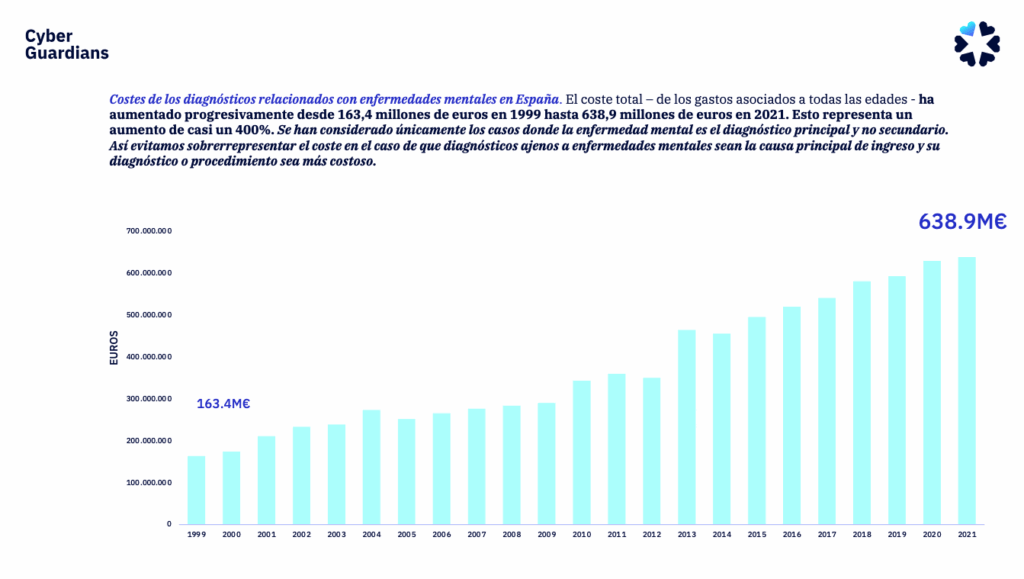 - une augmentation de 300% des coûts associés aux problèmes de santé mentale chez les moins de 20 ans entre 1997 et 2022, en particulier à partir de 2012.
