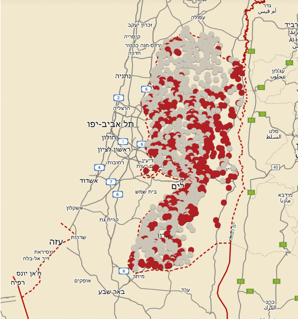 - l'ONG dénombre aussi des "postes avancés" : en décembre 2025, elle comptait 151 "avant-postes" et 175 fermes agricoles, (colonies établies illégalement, souvent depuis des années)