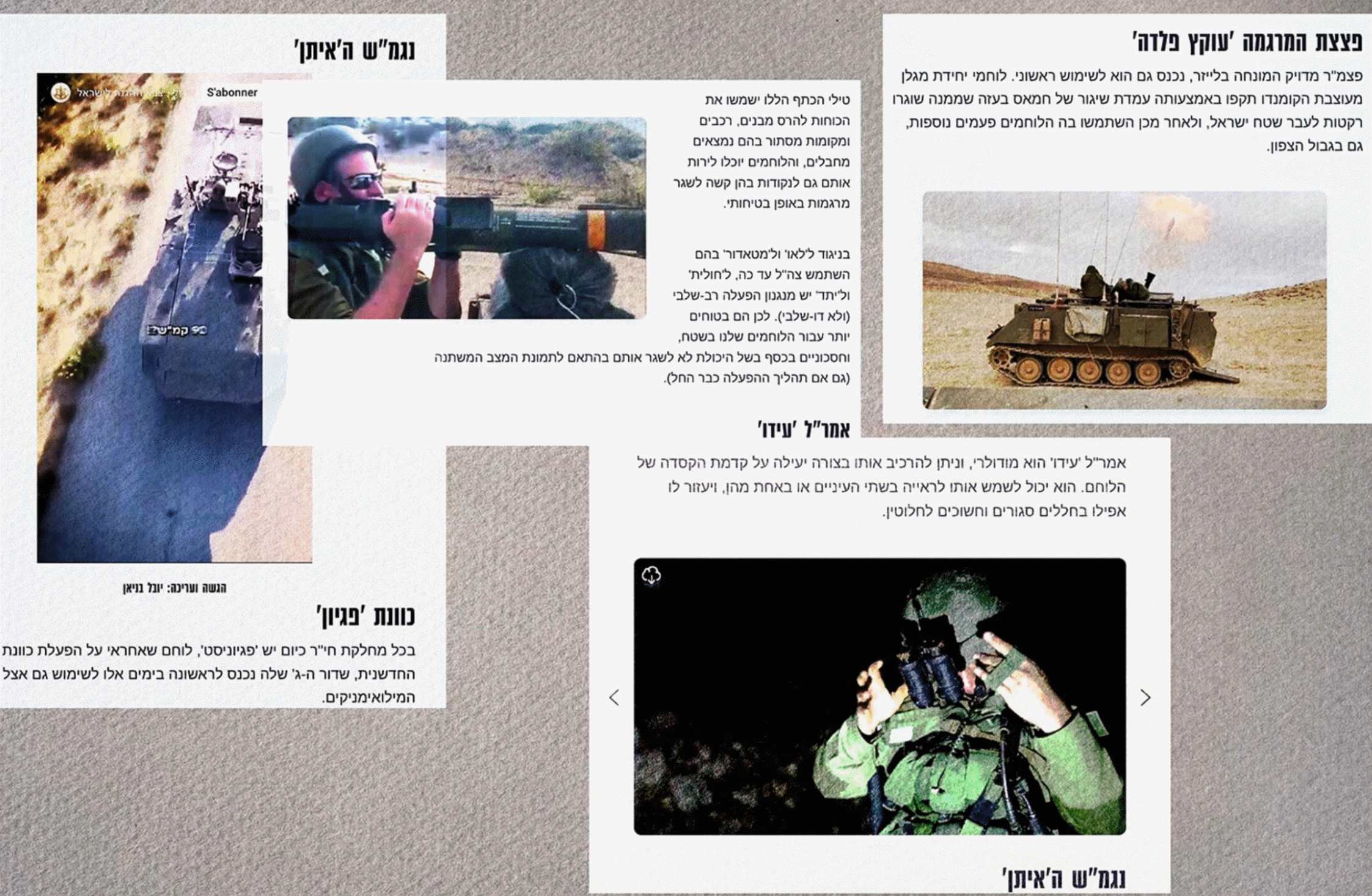 Présentation des armements sur le site officiel de l’armée israélienne. © Photomontage Mediapart