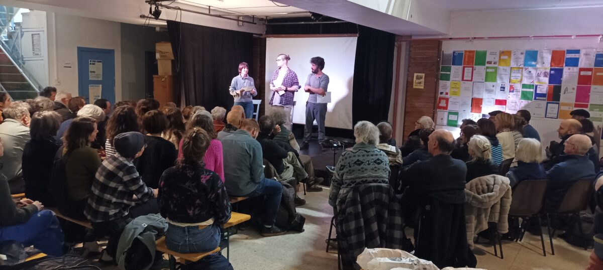 Le 20 février dernier, nous réunissions plus de 100 personnes pour une séance théâtrale et une criée publique à l’Amicale Laïque du Crêt de Roch.