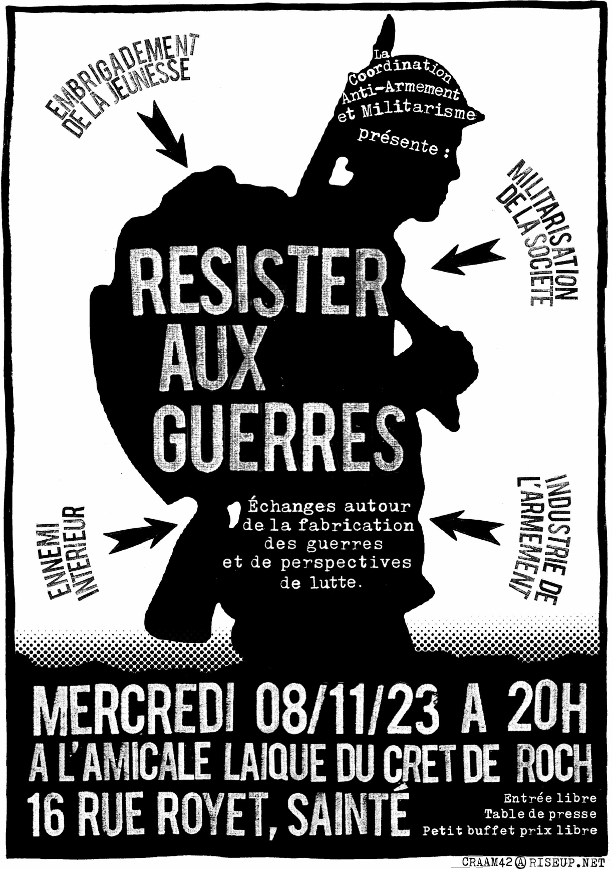 Débat organisé à la Cale (Amicale laïque du Crêt de Roch, 16 rue Royet, Saint-Étienne), le mercredi 8 novembre 2023 à 20h00
