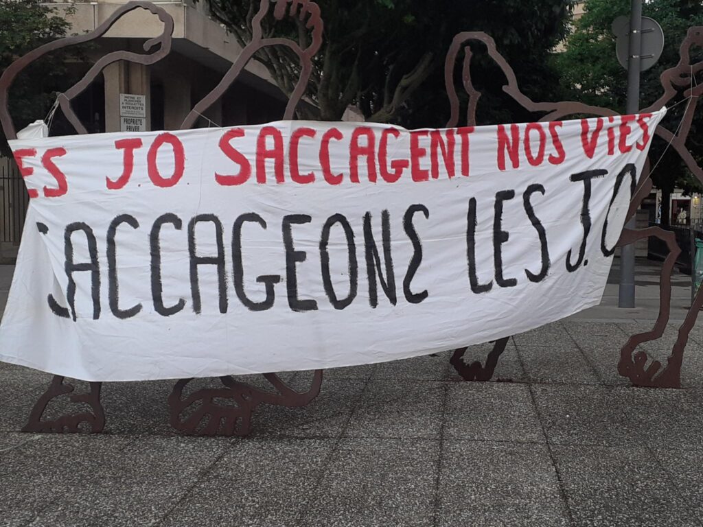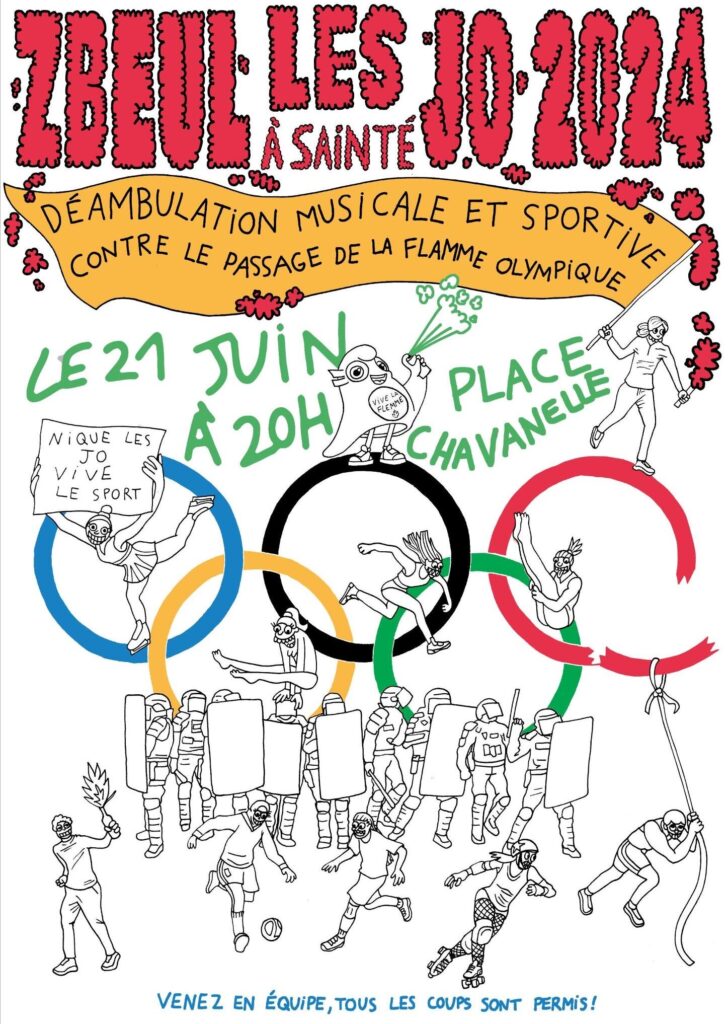 Le 21 juin, jour de la fête de la musique, nous avons participé à la manifestation place Chavanelle contre les saccages des JO2024 et la VSA. Une action qui a tourné court à cause du comité d’accueil, mais qui a tout de même fait du bruit. Nous étions assez nombreux place Chavanelle à répondre présents…