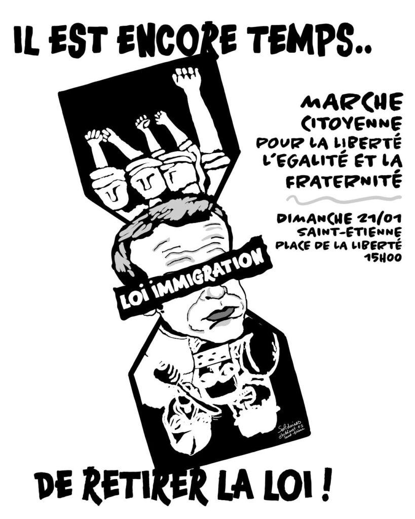Poursuivons la mobilisation sur tout le territoire contre la Loi Darmanin dimanche 21 janvier 2024 à St-Étienne. Manifestation à 15h, Place de la Liberté – Centre 2 L’Appel des 201 contre la loi immigration Binet, Toubon, Zeniter : trois voix contre la loi immigration Communiqué de presse national Appel de 400 collectifs, associations, syndicats, partis politiques…